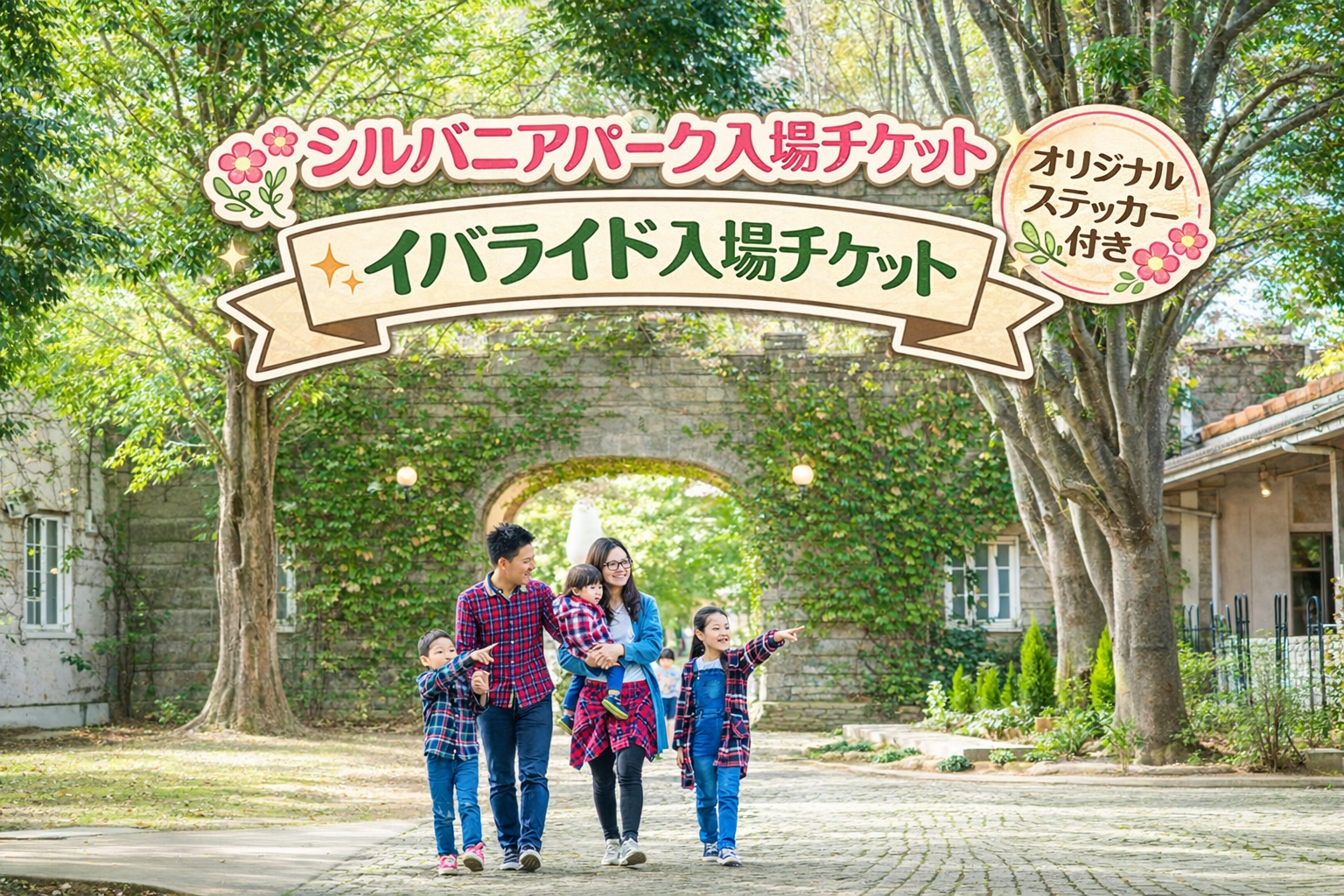 茨城の広大な自然の中で【さわる。つくる。あそぶ。たべる。】 こもれび森のイバライドはこれらの「体験」をめいっぱい楽しめる体験型テーマパークです。 シルバニアパーク入場付きの事前チケットが登場。 こちらからご購入いただくと、オリジナル絵柄のシールをお渡しいたします。 ※ 試験的に平日チケットのみ取り扱い中です。